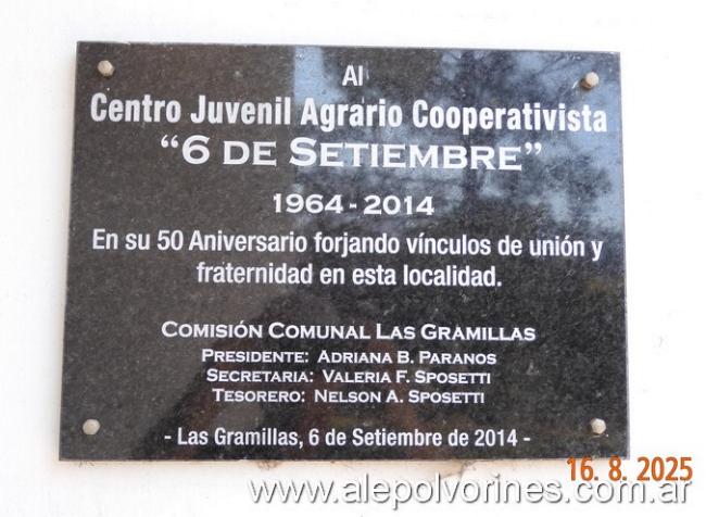 Edificio de la comuna Las Gramillas es un pueblo rural que nació con la llegada de inmigrantes italianos, se sitúa en el departamento Rio Primero de la provincia de Córdoba, unos 110 kilómetros al este de la ciudad capital provincial. Cuenta con acceso recientemente pavimentado que la conectan con otras localidades cercanas como Villa Santa Rosa y Toro Pujio, lo cual es importante para la producción local. El centro urbano es pequeño, pero bien organizado y prolijo. Es una de las tantas colonias a la que nunca llego el ferrocarril, la estación más cercana fue Villa Santa Rosa a 20 kilómetros. La principal actividad económica es la agricultura seguida por la ganadería, siendo en principal cultivo la soja. La producción lechera es también una actividad importante para la economía local, encontrándose en la comuna algunos tambos. Cuenta con poca más de 100 habitantes.
