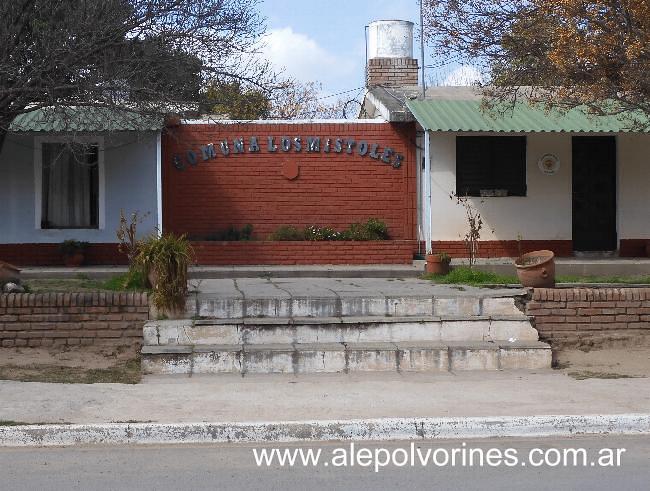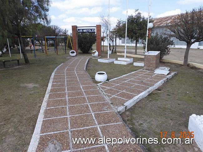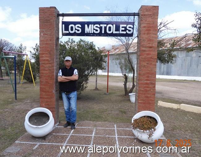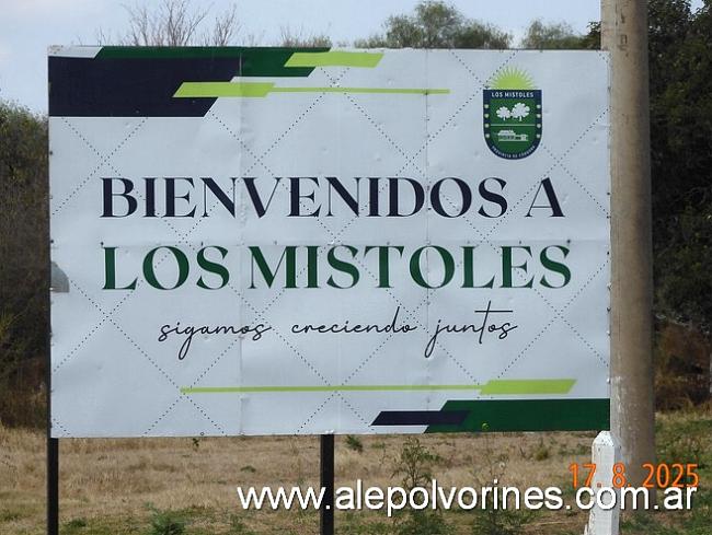 El bebedero con las siglas del FerroCarril Argentino del Norte La localidad de Los Mistoles está situada en el departamento Totoral de la provincia de Córdoba, unos 120 kilómetros al norte de la ciudad capital provincial. Para llegar ingresamos desde la localidad de Las Peñas, sobre ruta nacional N° 9, y luego transitar unos 13 kilómetros por la recientemente pavimentada ruta provincial S-130 arribamos a Los Mistoles. Los Mistoles es atravesada por el Ferrocarril Argentino del Norte, luego de la privatización Ramal A del ferrocarril General Belgrano, que le dió origen al pueblo. Enrique Udaondo en su libro "Significado de la nomenclatura de las estaciones ferroviarias" de 1942, el nombre de la localidad surge de: "llamase así por los arboles de esta denominación que crecen en las provincias del norte, cuyas hojas tienen propiedades medicinales y sus frutos se da al ganado. La madera se emplea en la construccion de muebles". La estación, ubicada en el tramo La Puerta-Deán Funes, fue de primera categoria, habilitada para pasajeros, encomiendas, carga y hacienda, contando con telégrafo. El ramal ferroviario hoy se encuentra clausurado, lo que causó una decadencia social y económica en la comuna que hasta hoy continúa. El poblado cuenta con aproximadamente 125 habitantes. La principal actividad económica es la agricultura, seguida por la ganaderia. Entre los principales cultivos de la zona se encuentran la soja, el maiz, el trigo y la avena.
