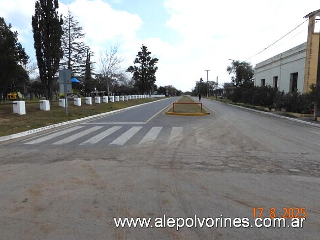 Ancha calle pavimentada, al fondo la estacion ferroviaria