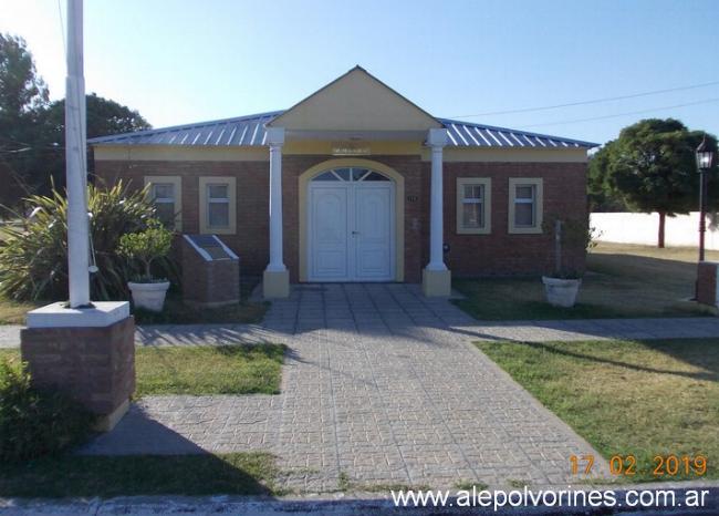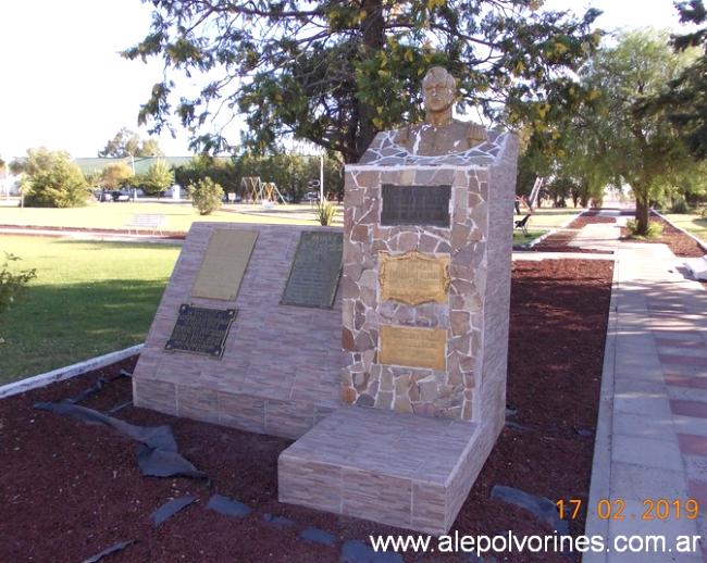 Busto del General San Martin En 1937 se inaugura la iglesia catolica San Martin de Tours y el 14 de Noviembre de 1941 se crea la Comision de Fomento que mas tarde se constituye en municipalidad. Mas adelante se crea el Registro Civil, el Juzgado de Paz y la sala de primeros auxilios. La estacion ferroviaria fue, segun el manual de estaciones de 1958, una estacion de primera categoria, habilitada para pasajeros, encomienda y carga y contaba con telegrafo. EL suministro electrico llega a la localidad alrededor de 1970. En la actualidad Abramo tiene una poblacion urbana de aproximadamente 320 habitantes y pertenece al departamento de Hucal.