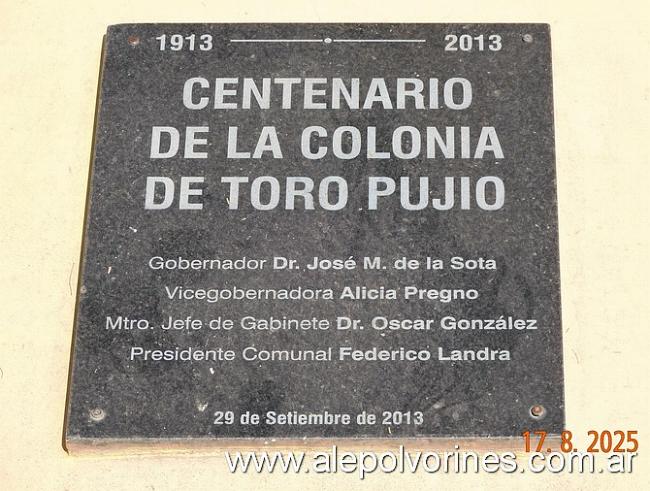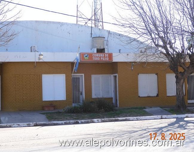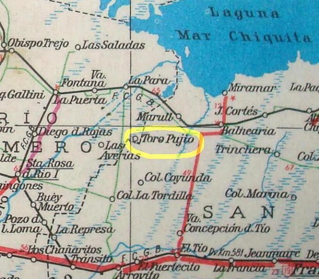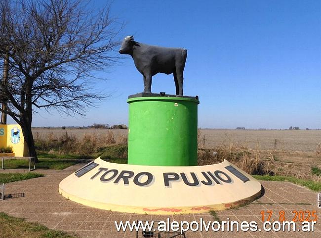 Ubicacion de Toro Pujio al sur de Mar Chiquita Toro Pujio es una pequeña localidad situada en el departamento San Justo, en la región de Mar Chiquita, provincia de Córdoba, Argentina. Se encuentra ubicada sobre el camino s152, asfaltado, a 4 km de la ruta provincial E52, a 135 km de la Ciudad de Córdoba y a 43 km al norte de la ciudad de Arroyito. El término “Toro Pujio” proviene del quichua (aguada o fuente) traducido como “aguada del toro”. Fundada en 1913, los primeros colonos ya se habían radicado en la zona hacia 1910. La comuna fue oficializada el 27 de marzo de 1984. El pueblo tiene aproximadamente diez manzanas, prolijo y limpio. Existen en la localidad un dispensario, una escuela primaria, un instituto secundario, un puesto policial, un polideportivo con pileta y un edificio comunal en el cual se efectúan gran parte de las funciones administrativas. La plaza es proporcional al pueblo, pequeña, ocupa un cuarto de una de las manzanas, en la misma se encuentra la capilla María Auxiliadora. La principal actividad económica, como en toda esa zona, es la agricultura seguida por ganadería, siendo los principales cultivos la soja y el maíz. La producción láctea también tiene relevancia en la economía local. Toro Pujio tiene una población urbana de poco más de 200 habitantes. Su fiesta patronal es el 24 de mayo, festividad de María Auxiliadora.