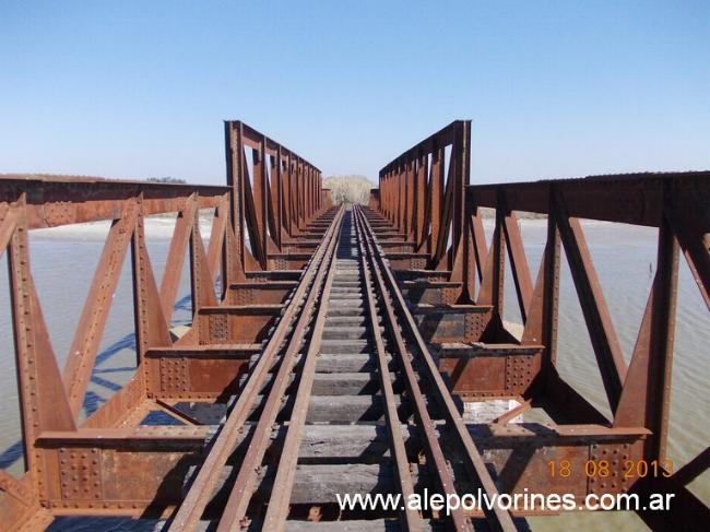 Puente del Ferrocarril CGBA Dos kilometros mas adelante llego al primer puente Ferroviario, construido en 1910 por la Compania General de Ferrocarriles en la Provincia de Buenos Aires, el CGBA, se ubica entre las estaciones La Pinta y Km 95 pertenecientes al ramal Pergamino a Vedia, ya sin trafico.